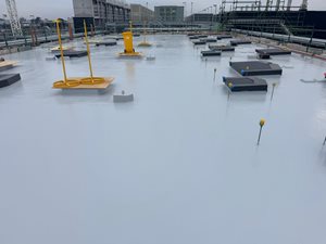 The scope of work involved the application of a multi-layered liquid waterproofing system designed to restore and protect the roof substrate. The specified system was selected for its rapid-curing properties, robust performance, and ability to provide long-term durability.