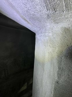 To address these issues, spalled concrete was repaired, and failed sealant joints were replaced to restore structural integrity. Larger voids and transitions were rebuilt using Eucocrete HBM, creating smooth coved transitions, while Eucocrete NWP filled smaller imperfections and provided a waterproofing layer for optimal coating adhesion. Movement joints were sealed with Dymonic 100, a potable water–certified sealant. The asbestos-containing roof was safely encapsulated with Altex Encapsulation Primer, sealed with Dymonic 100, and topcoated with Carboguard 636 PW. The floor was resurfaced with Versaspeed LS100 and finished with Carboguard 636 PW, resulting in a durable, waterproof, and uniform finish.